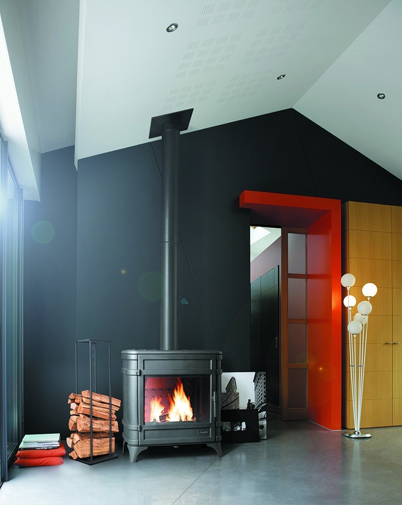 Le système vitre propre permet de ralentir l’encrassement du vitrage. Une arrivée d’air sur le haut de la vitre crée un voile de protection. L’ air préchauffé est propulsé le long du vitrage. Il déclenche la combustion des gaz et des matières volatiles protégeant ainsi la vitre contre la fumée et le dépôt de suie.